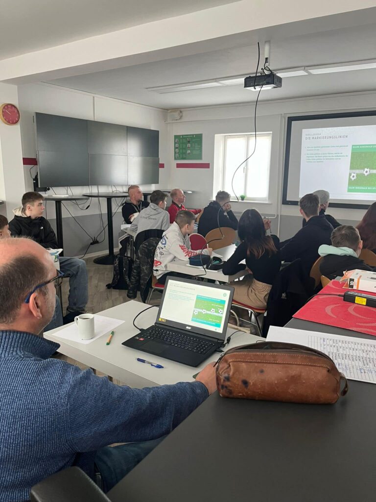 Am gestrigen Feiertag begann am Vormittag der neue Schiedsrichterlehrgang 2024 im VIP Raum des FC Anker Wismar. Unser Lehrwart Mathias Tietze Böhm erläuterte die wichtigsten Regeln und was ein Schiedsrichter alles zu beachten hat. Auch der Obmann der AG Schiedsrichter Steffen Maibaum begrüßte die angehenden Schiedsrichteranwärter. Am Mittag erklärte unser Kreisadministrator Daniel Voigt noch was im DFBnet und beim elektronischen Spielberichtsbogen zu beachten ist.